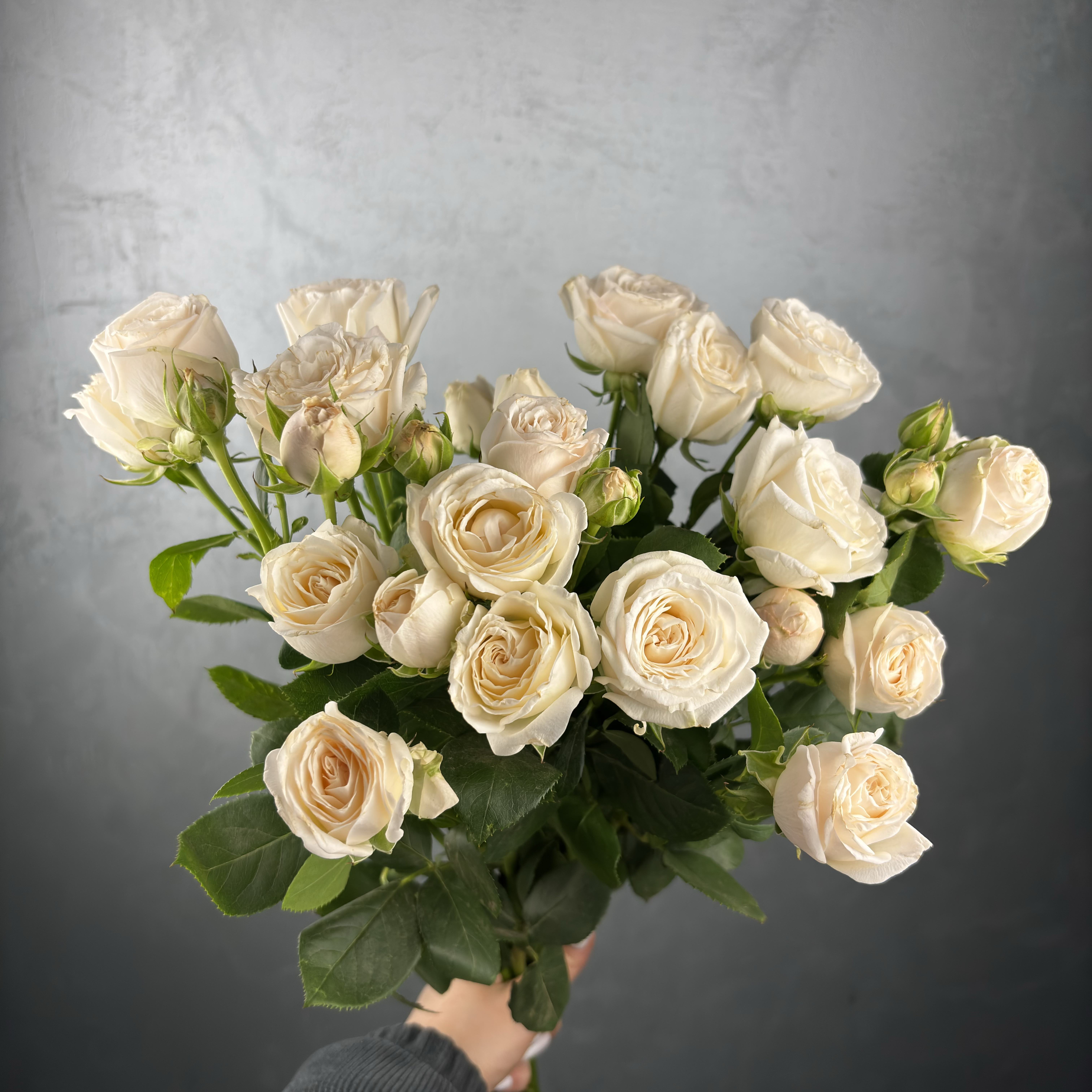 Белая пионовидная кустовая роза сорт PRINCESS BOMBASTIC 70см купить. Цветы с доставкой